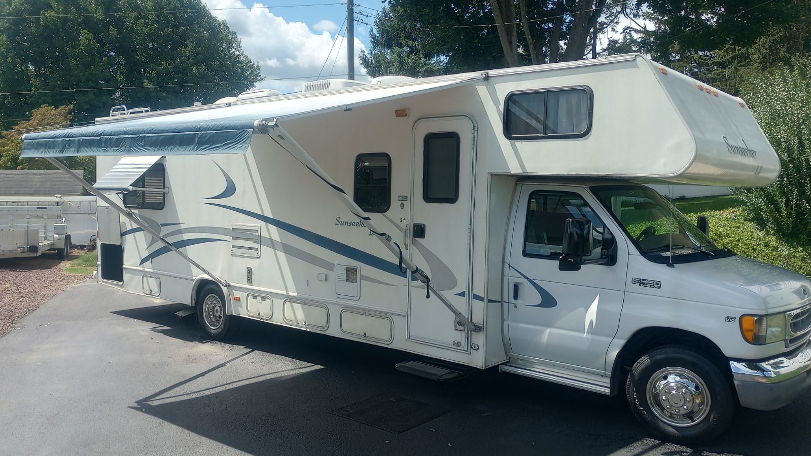 If you’re in the market for good running well taken care of Class C you should stop by and look at this 31’ Sunseeker that we have on our lot. Just inspected so it’s ready for the fall camping season! The 12’ slide out opens this motorhome up into a spacious retreat with the couch and dinette sliding out. Most sized families can fit into this unit with no problem with the rear queen bed along with the over the cab bed it will sleep 4 nicely. You still need more room, well then you can fold down the dinette and the sofa and sleep a few more. The bath is towards the rear with the toilet and sink on the driver’s side and the shower across the hall. Plenty of storage inside and out so that you can take just about anything you would need along. This is a nice unit which is ready to go camping with your family! Some of the amenities this unit has to offer include: Triton V10 motor with 50,500 miles, Onan Generator with 512 hours, Max Air Covers, Power Fan, Rear Ladder, Awning with new Fabric, Spare Tire, Window Awnings, Slide with Awning Topper, AC, Furnace, Hot Water Heater, Fridge, 3 Burner Stove, Oven, Microwave, Booth Dinette, Artic Pack, China Bowl Toilet, Privacy Shades, Owners Manuals, and more! Set up a time to look at this motorhome before it’s gone. Just inspected and has new tires!