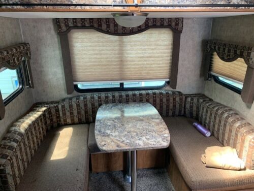 Well built 28’ travel trailer with one slide out and 2 bunks is looking for a new family to take it camping. It has a queen bed in the front of the trailer and then 2 bunks on the passenger side in the rear. The bathroom is located on the driver’s side in the rear. The center of the unit contains your living area along with the kitchen, a large “U” shaped dinette slides out. Some of the amenities this unit has to offer include: 2” Bonded Aluminum Frame, 4 Season Trailer, Thermal Panel Windows, Rear Ladder, Spare Tire, LED Lighting, Outside Kitchen, 10 Gallon Water Heater, Outside Speakers, Flatscreen TV, Stereo with CD/DVD, 3 Burner Stove, Oven, Microwave, Bunks, Control Panel, Solar Panel, 13,500 BTU Ducted AC, 35,000 BTU Furnace, EZ Lift Hitch and sway bars are available and more! The thing that is needed is a new awning to
